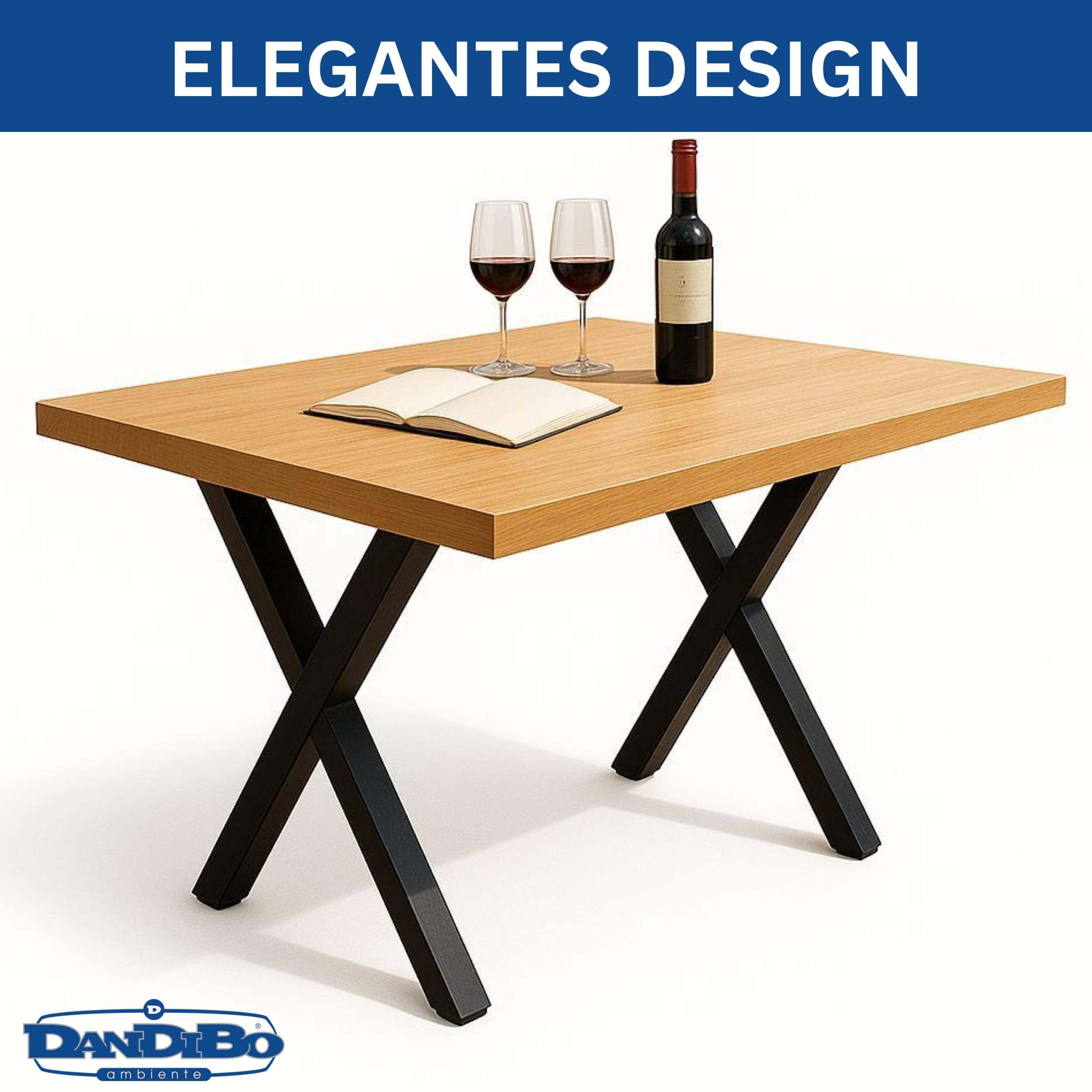 MARKANTE X-FORM – Das charakterstarke X-Design verleiht Ihrem Tisch einen modernen, industriellen Look. Gleichzeitig sorgt die gekreuzte Konstruktion für eine optimale Kraftverteilung und einen sicheren Stand – perfekt für Esstische, Schreibtische oder stilvolle Arbeitstische.