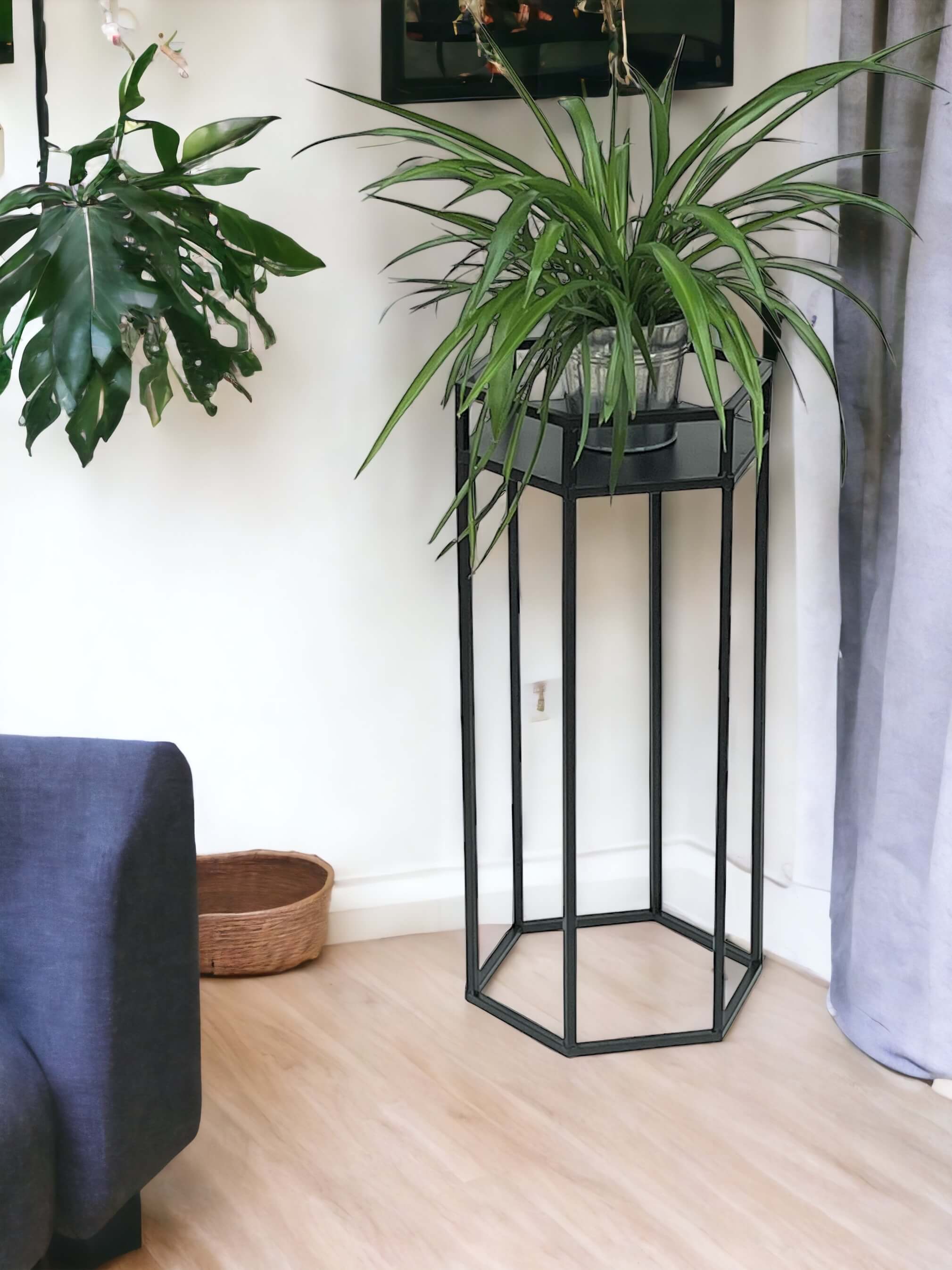 Entdecken Sie den modernen DanDiBo Blumenständer aus stabilem Metall in eleganter schwarzer Farbe. Er ist ideal für Pflanzen, Blumentöpfe und Kräuter und passt perfekt in Wohnzimmer, Küche, Flur, Terrasse oder Balkon. Das sorgfältig verschweißte Metallgestell gewährleistet einen sicheren Halt und der Blumenständer wird komplett zusammengebaut geliefert, sodass Sie ihn nur noch auspacken und aufstellen müssen. Mit einer flächenverteilten maximalen Gewichtsbelastung von ca. 30 kg ist er äußerst robust und funktional.