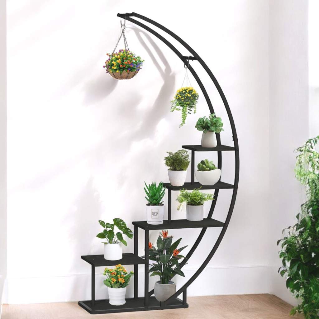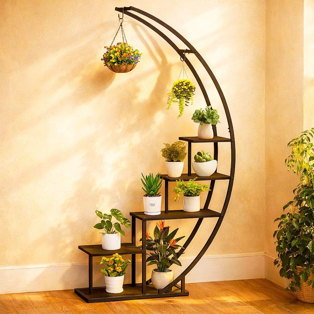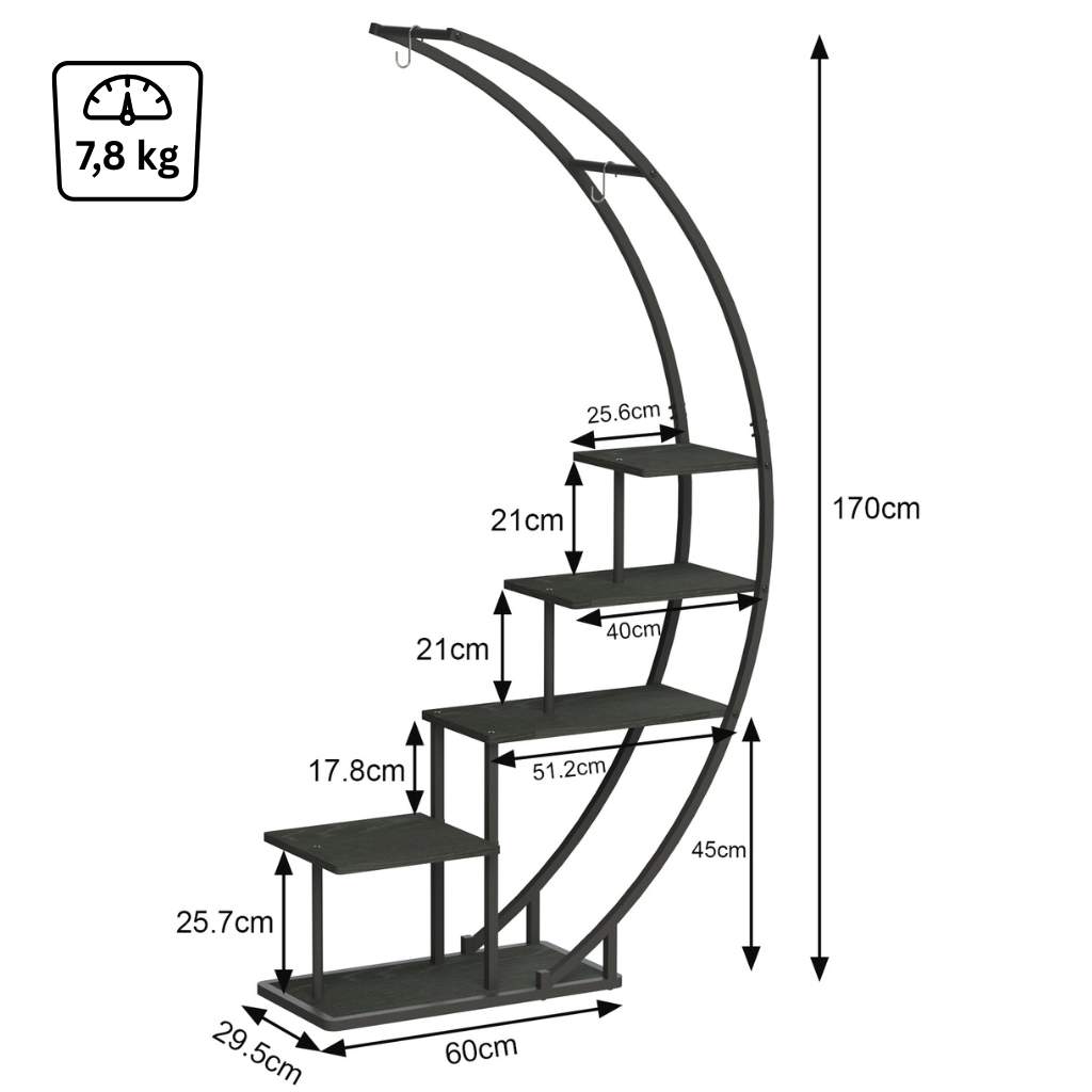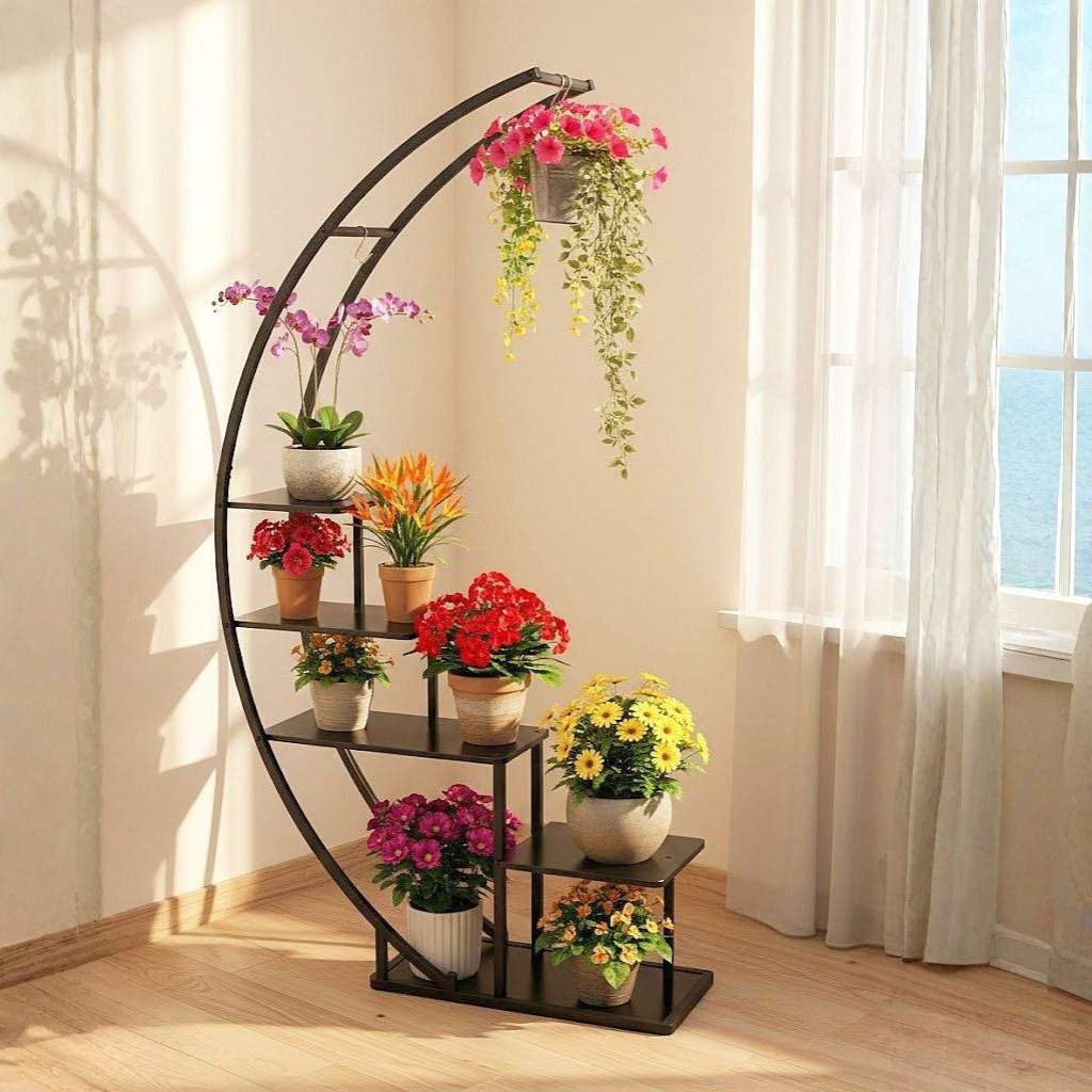 ELEGANTES DESIGN: Das geschwungene, mondförmige Design dieser Pflanzenleiter verleiht jedem Raum eine moderne und elegante Note. Ideal für Wohnzimmer, Esszimmer oder Veranda, um Ihre Pflanzen stilvoll zu präsentieren.<br>