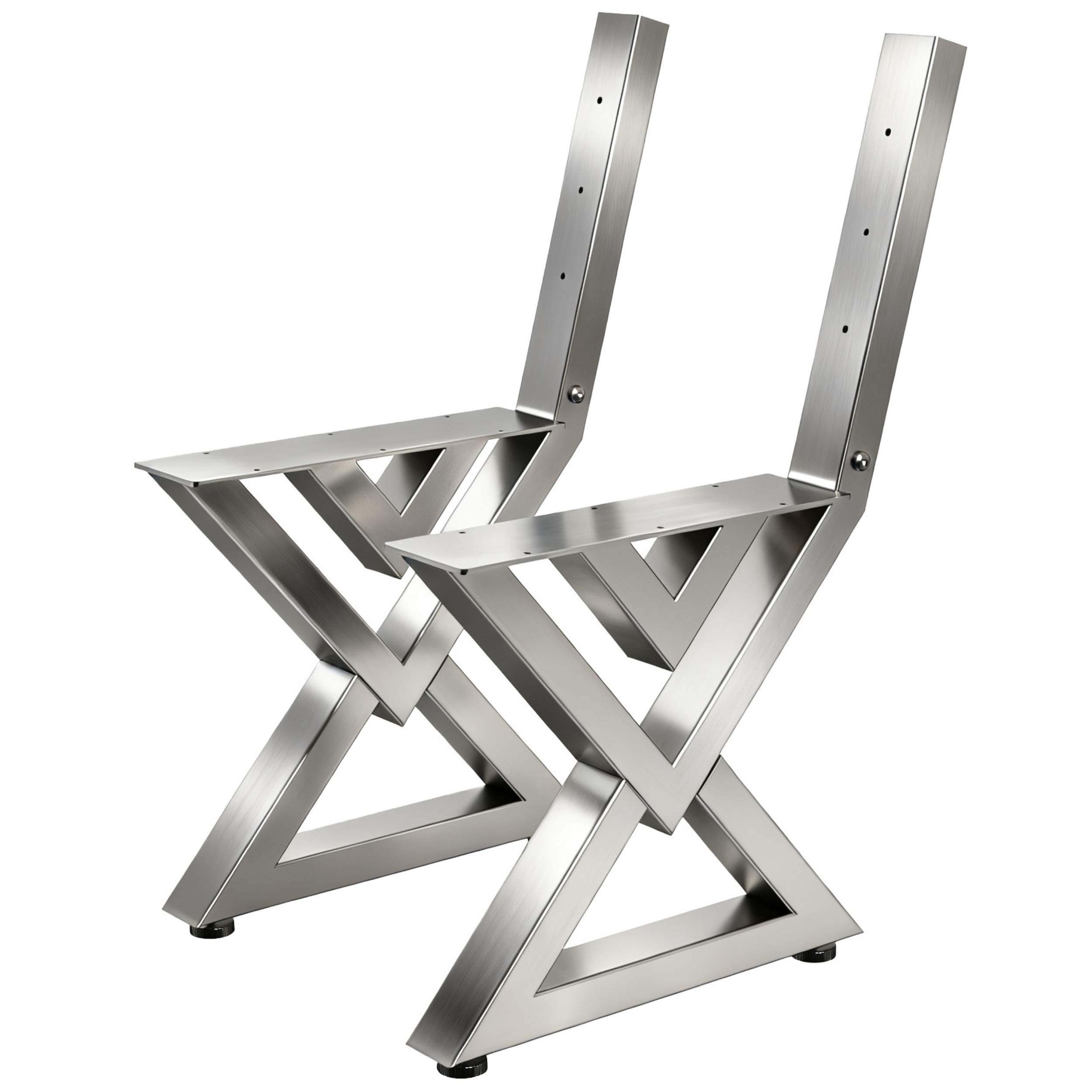 ROBUSTE EDELSTAHLKONSTRUKTION – Diese hochwertigen X-Bankbeine bestehen aus massivem Edelstahl und bieten maximale Stabilität sowie eine hohe Tragfähigkeit. Das widerstandsfähige Material ist rostfrei, kratzfest und bestens für den dauerhaften Einsatz im Innen- und Außenbereich geeignet – ideal für langlebige und belastbare Sitzmöbel.