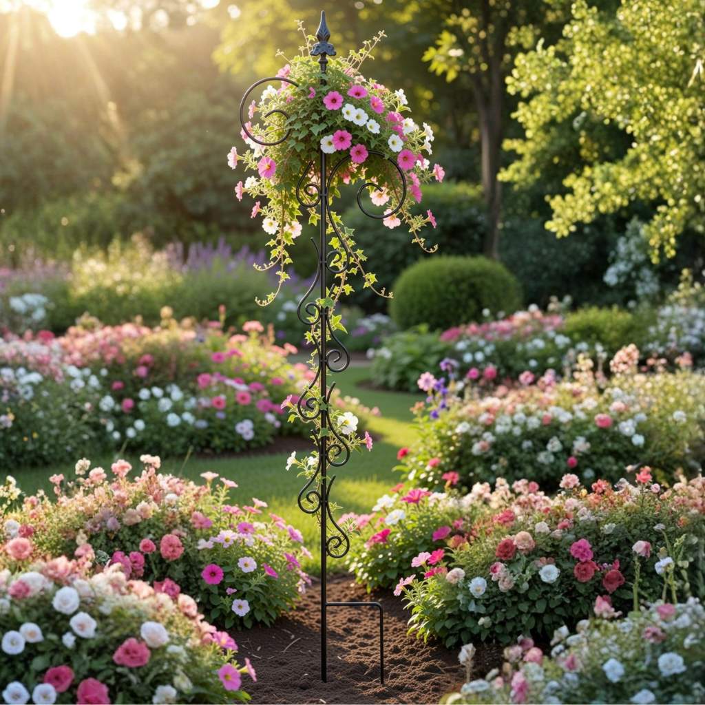 MIT 2 PRAKTISCHEN HAKEN:Ausgestattet mit zwei stabilen Haltern eignet sich die Rankhilfe perfekt zum Aufhängen von Laternen, Windlichtern oder Blumenampeln. So entsteht eine stimmungsvolle Kombination aus Rankhilfe, Pflanzenhalter und dekorativer Gartenbeleuchtung.