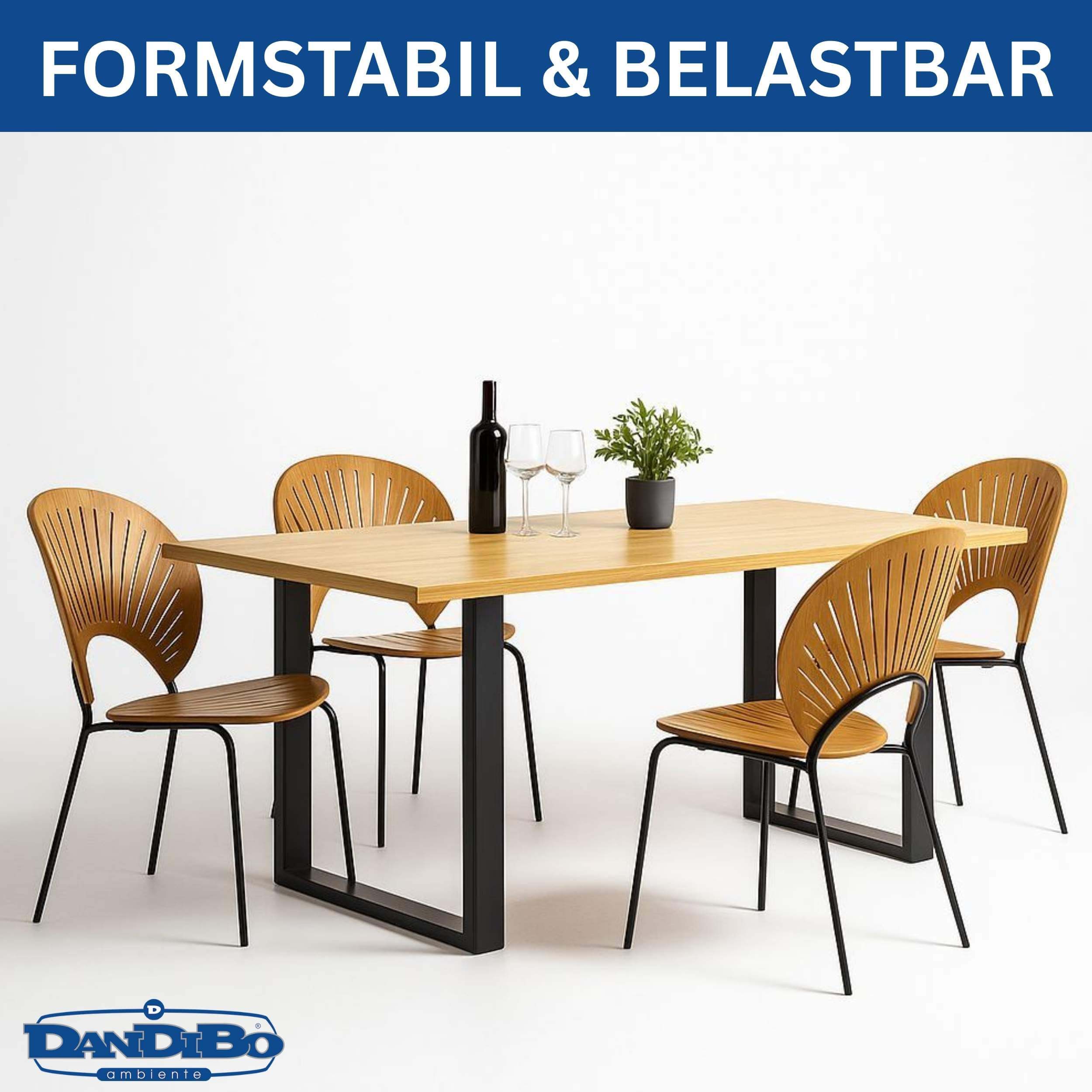 MODERNE U-FORM – Die klare, geometrische Form verleiht Ihrem Tisch ein zeitloses, elegantes Design. Dank der großzügigen Auflagefläche entsteht eine optimale Stabilität – ideal für Esstische, Schreibtische oder Konferenztische.<br>