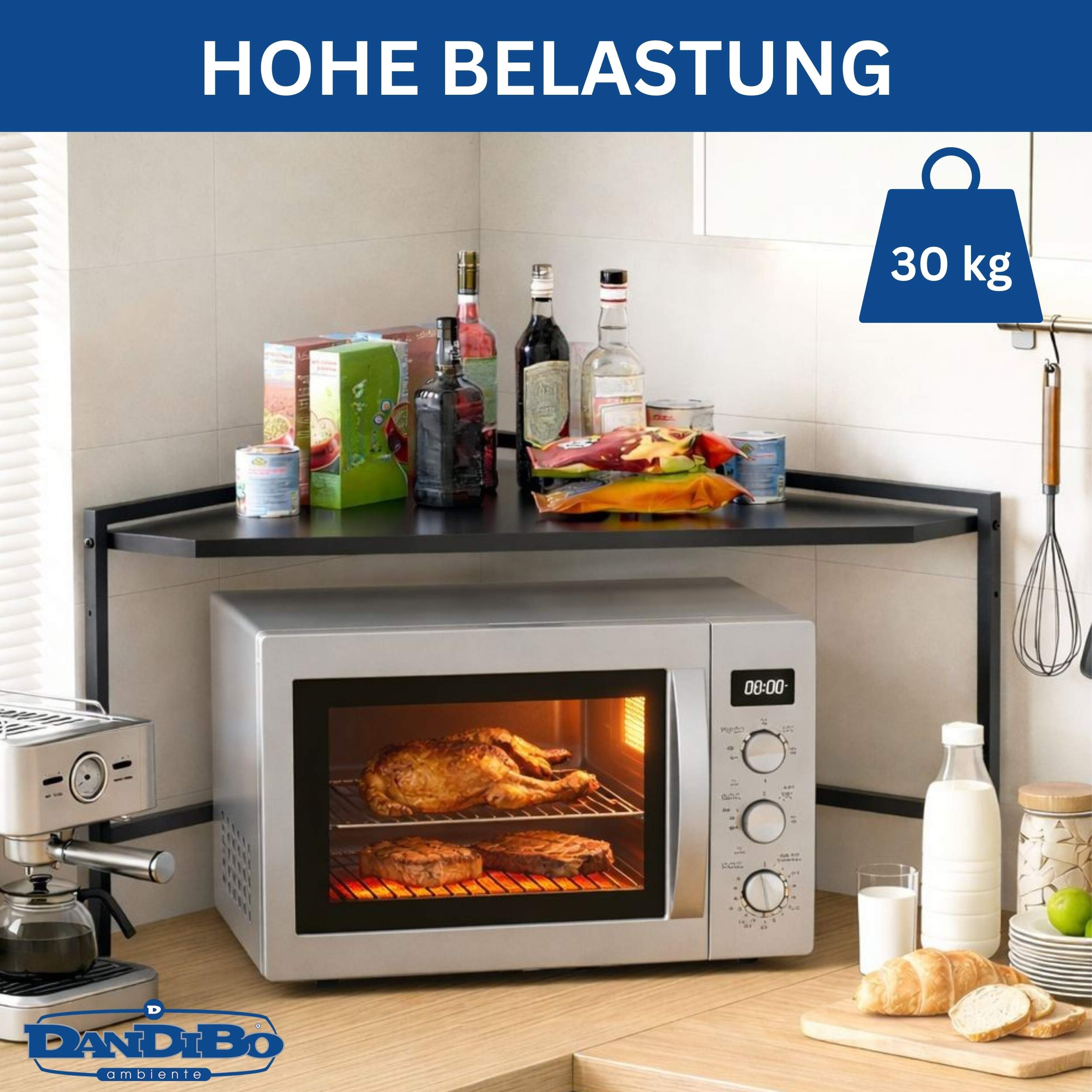Das schlichte, funktionale Design fügt sich harmonisch in jede Kücheneinrichtung ein. Das Regal schafft zusätzlichen Stauraum und hilft dabei, Arbeitsflächen ordentlich und übersichtlich zu halten – perfekt für kleine und große Küchen.