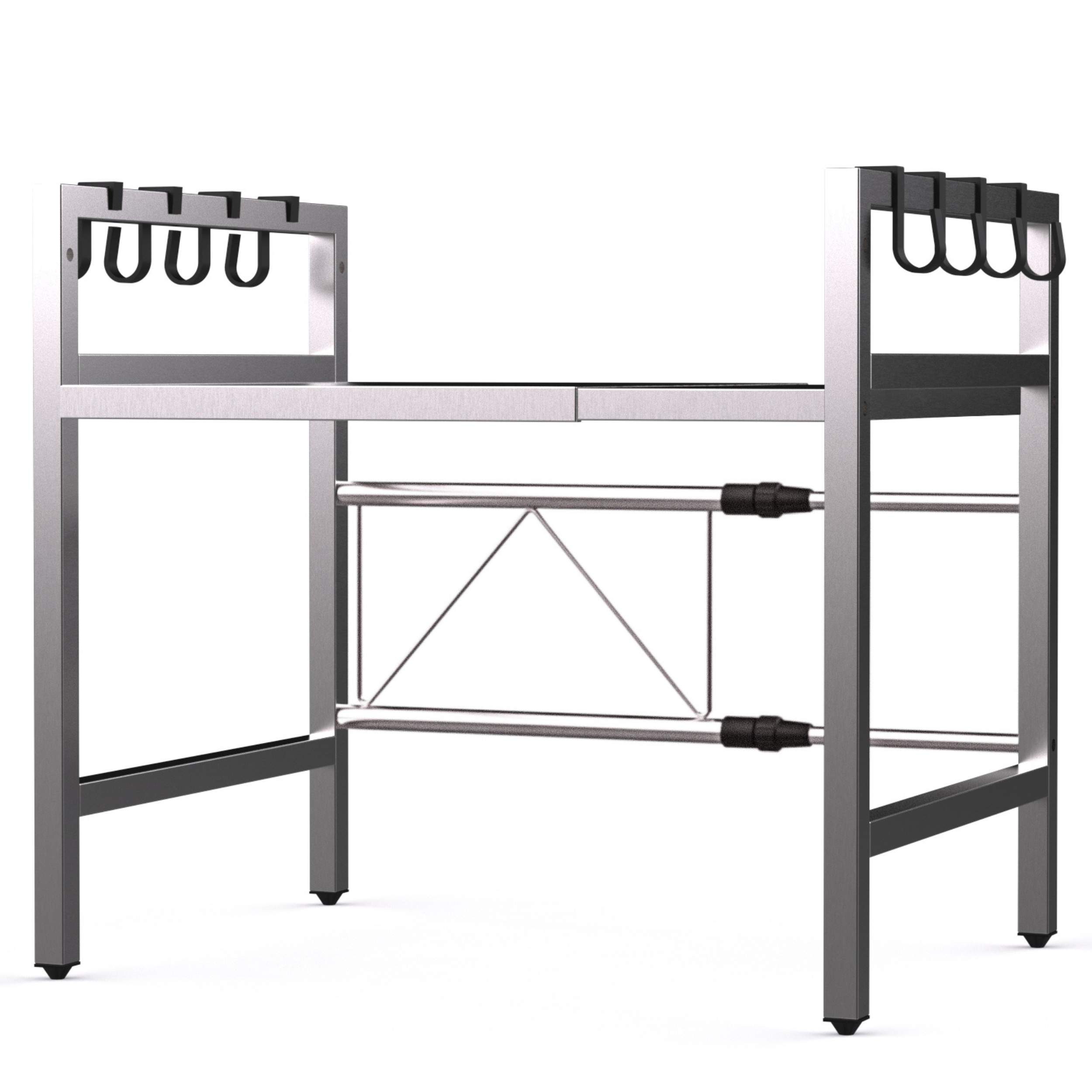 GRÖSSE FLEXIBEL EINSTELLBAR – Dieses hochwertige Küchenregal aus Edelstahl lässt sich optimal an Ihre Küche anpassen. Die Breite ist flexibel von 40 cm bis 64 cm verstellbar. Die Ablagenhöhen können individuell eingestellt werden, sodass sowohl kleine als auch größere Küchengeräte wie Mikrowellen, Mini-Backöfen oder Küchenmaschinen problemlos Platz finden.