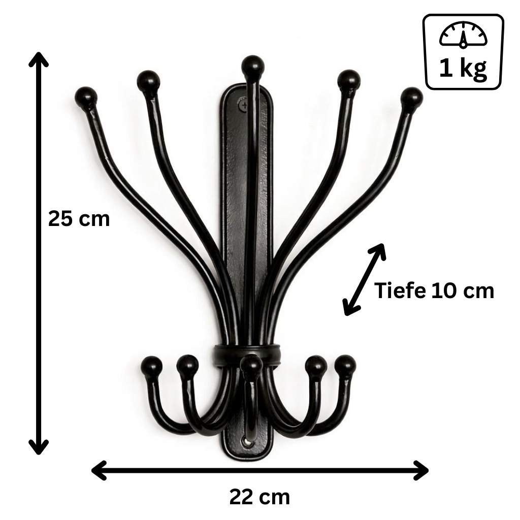 PRAKTISCHE AUFHÄNGEMÖGLICHKEIT: Mit mehreren stabilen Haken bietet dieser Kleiderhaken ausreichend Platz für Jacken, Mäntel, Taschen, Schals oder Accessoires. So schaffen Sie im Handumdrehen Ordnung im Flur, Schlafzimmer oder Badezimmer.