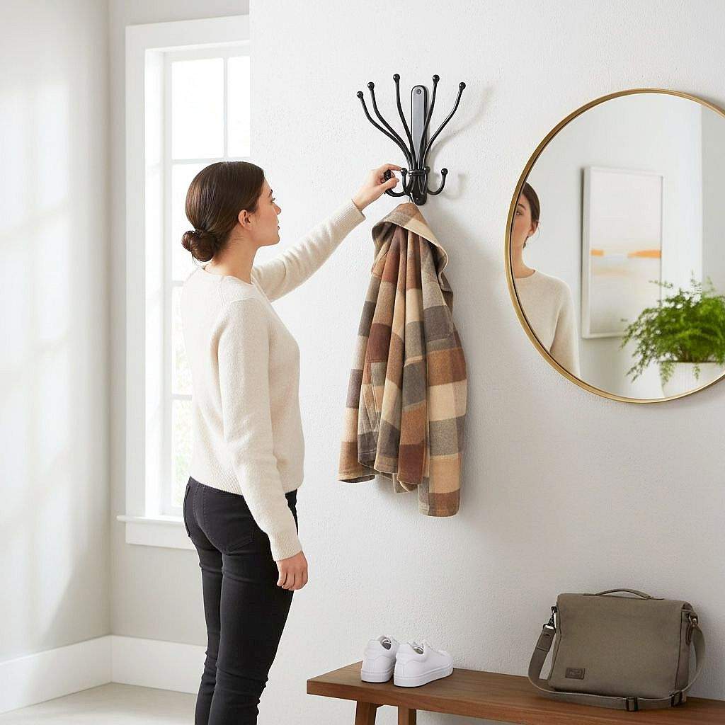 VIELSEITIG EINSETZBAR: Ob im Eingangsbereich, in der Garderobe, im Büro oder im Bad – dieser Wandhaken lässt sich flexibel einsetzen und ist eine praktische sowie dekorative Aufbewahrungslösung.