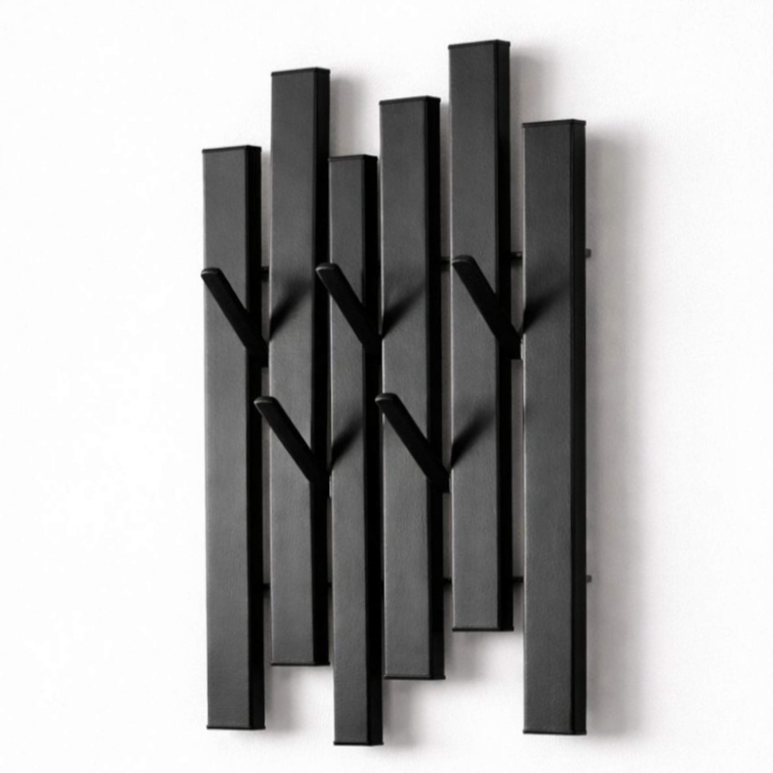 MODERNE WANDGARDEROBE AUS METALL: Diese stilvolle Garderobenleiste überzeugt durch ihr modernes, geradliniges Design und wird zu einem dekorativen Highlight in Ihrem Zuhause. Die unterschiedlich hohen Streben verleihen dem Wandpaneel eine besondere Optik und sorgen für ein zeitgemäßes Erscheinungsbild.