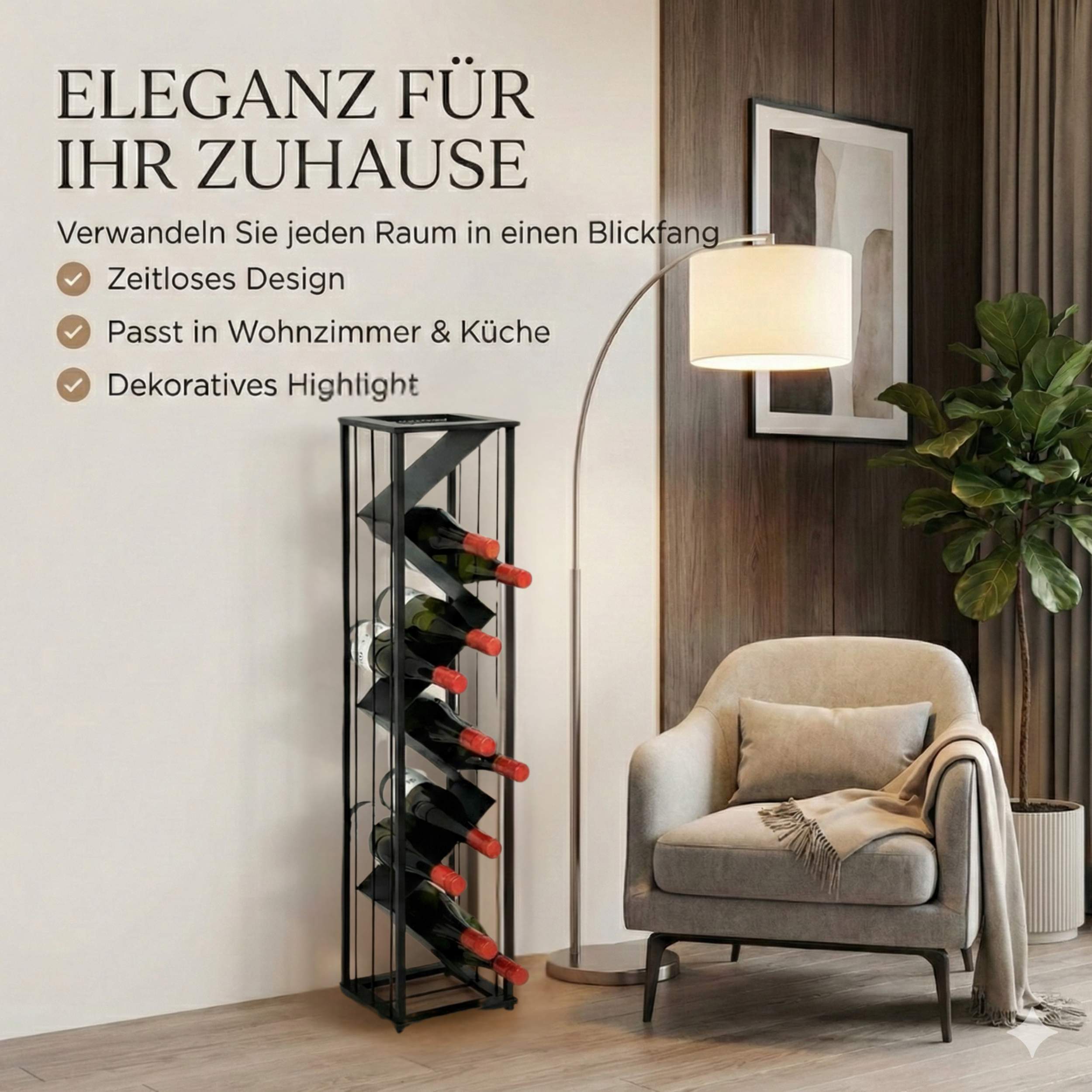 ELEGANTES & MODERNES WEINREGAL AUS METALL: Der stilvolle Flaschenhalter im schmalen, zeitlosen Design passt perfekt in jede Küche, jedes Wohnzimmer oder in den Essbereich und setzt Ihre Weinflaschen dekorativ in Szene.