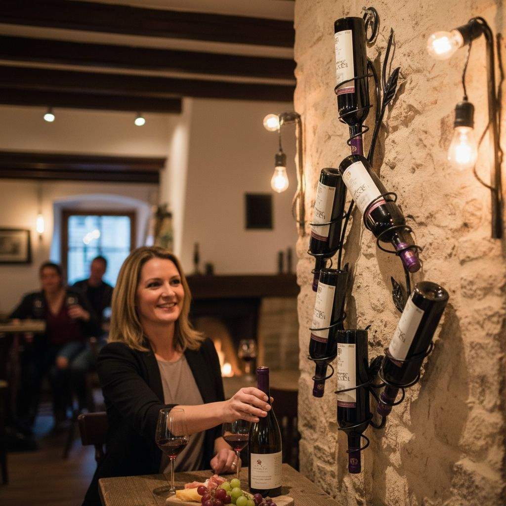 HOCHWERTIG GESCHMIEDET UND LANGLEBIG VERARBEITET: Gefertigt aus stabilem Metall bietet das Flaschenregal eine robuste Konstruktion und eine lange Lebensdauer. Die sorgfältige Verarbeitung sorgt für sicheren Halt Ihrer Weinflaschen und eine hochwertige Optik.