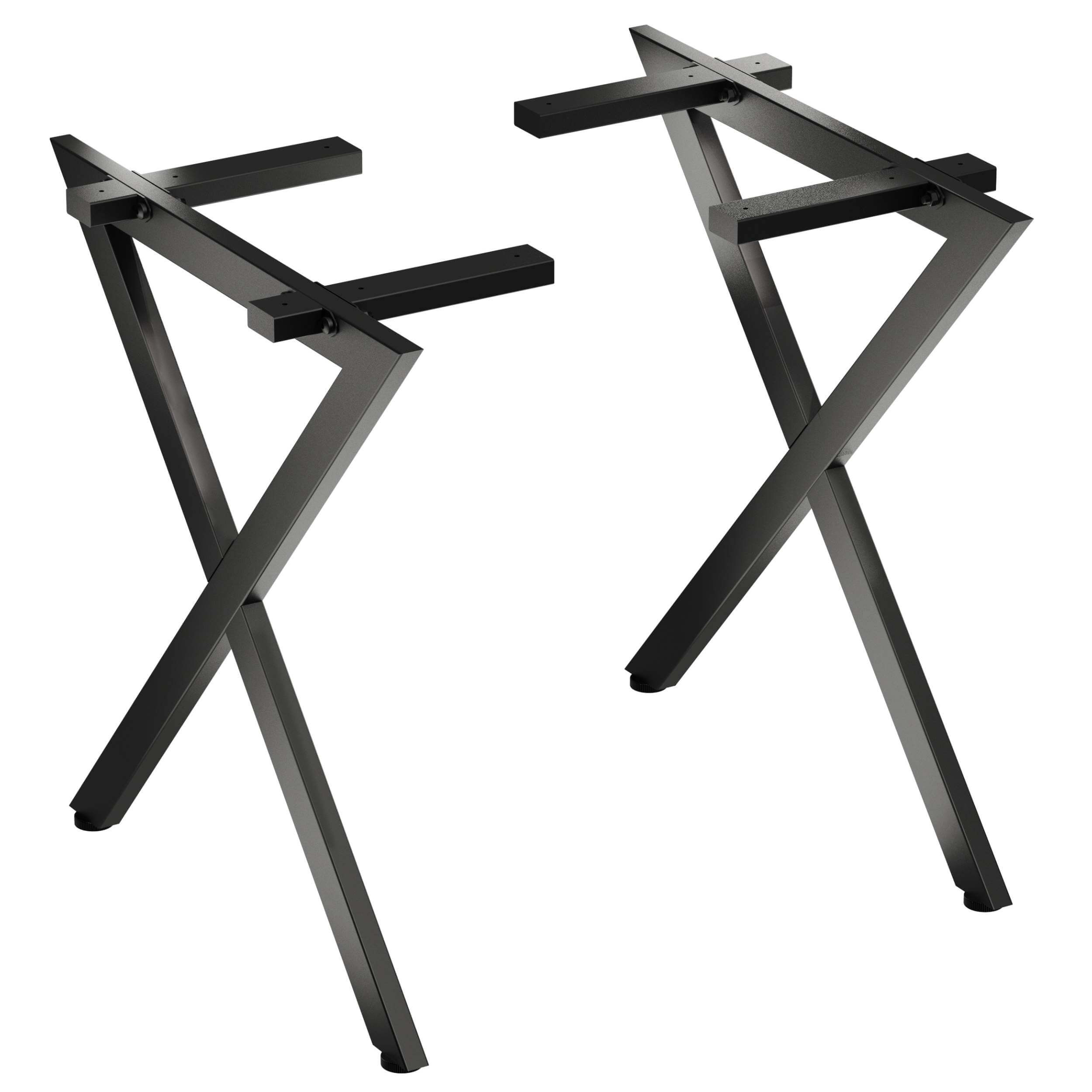 DIMENSIONS & DETAILS – Height: 72 cm, total top width: 68 cm, depth of support arms: approx. 30.5 cm. Profile size: approx. 2.5 × 5 cm. Color: black, powder-coated. Scope of delivery: 1 set of X table legs (without tabletop). Wall thickness: 1.2 mm. Weight: 7.4 kg.