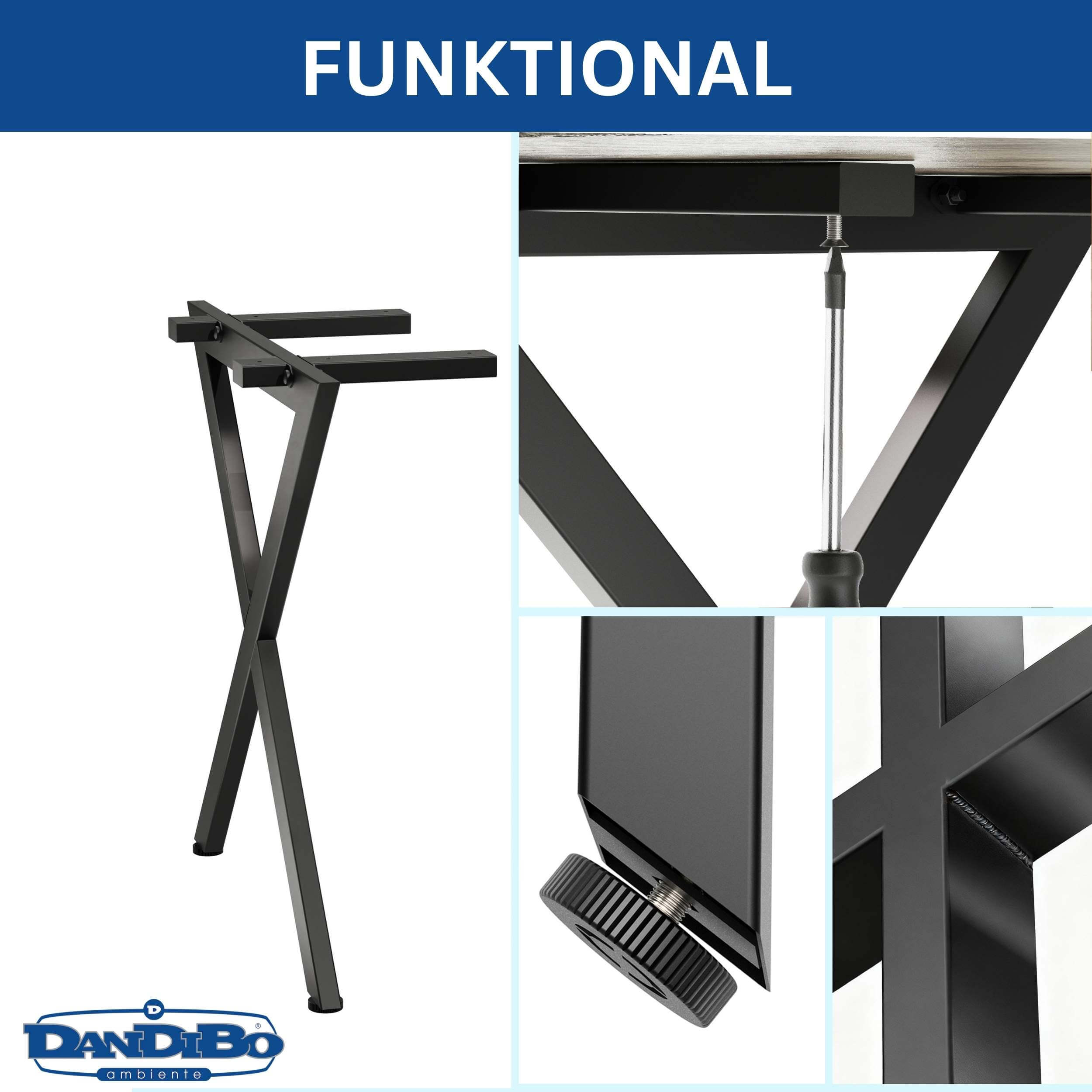 STRIKING X DESIGN WITH CROSSBARS – The distinctive X-shape gives your table a modern, industrial look. Additional crossbars on the top provide even more stability and optimal weight distribution – perfect for dining tables, desks, or stylish work tables.