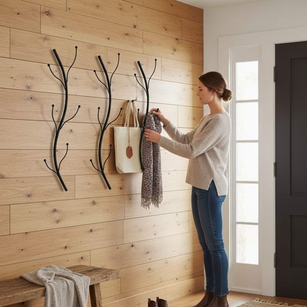 6 PRACTICAL HOOKS EACH FOR MAXIMUM STORAGE SPACE: Each wall coat rack is equipped with six sturdy hooks, providing ample space for jackets, coats, bags, scarves, umbrellas, and other accessories. With the set of 3, you create even more order and optimal organization in your entrance area or across multiple rooms.