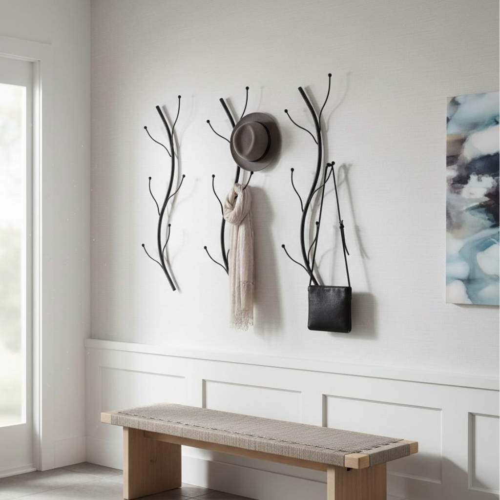 MODERN DESIGN WALL COAT RACK IN A PRACTICAL SET OF 3: This stylish wall coat rack set impresses with its extraordinary tree-like design and is guaranteed to become a decorative eye-catcher in your home. The curved shape adds a modern yet elegant touch to any room – ideal for a harmonious and spacious wall arrangement in a triple configuration.