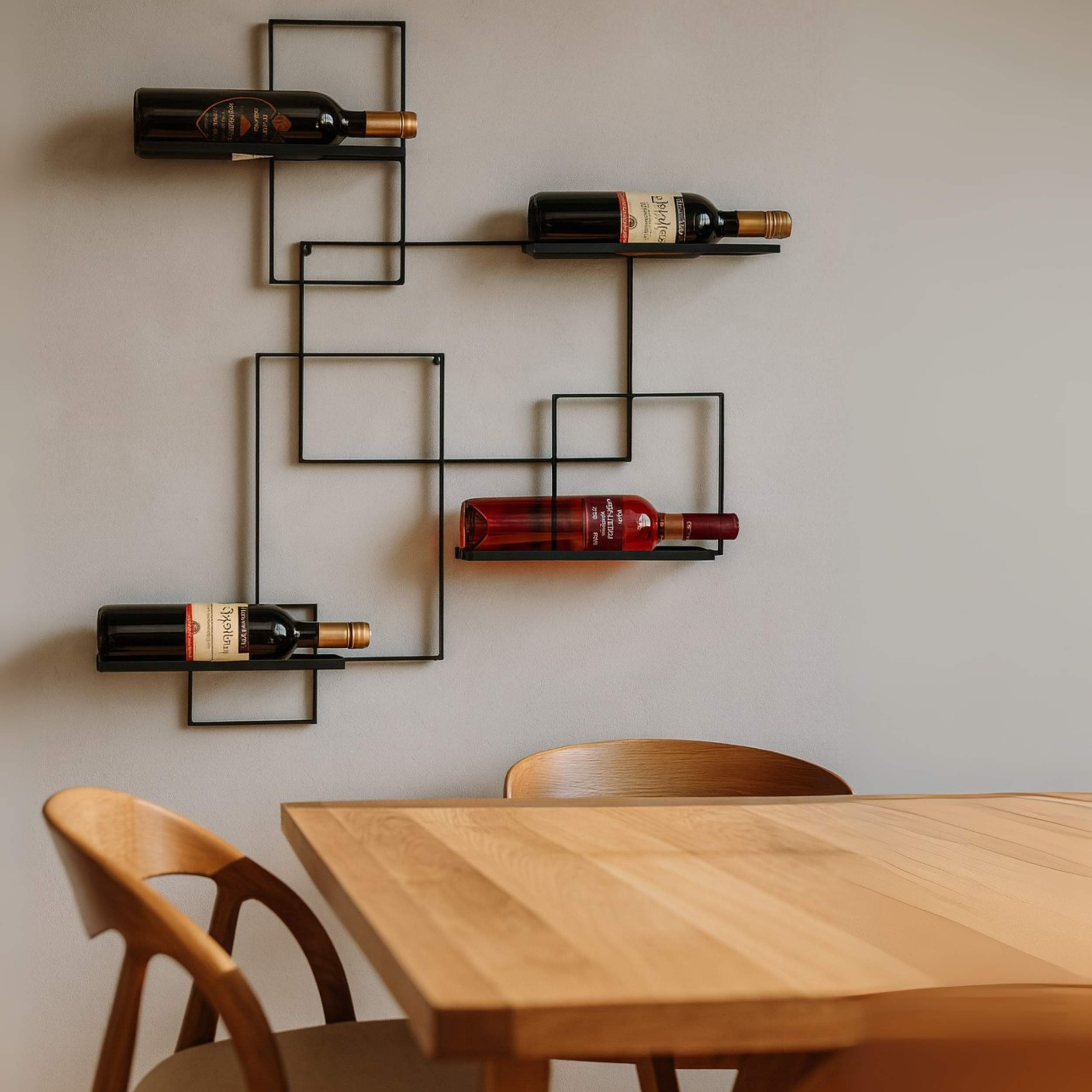 SPACE FOR 4 BOTTLES – The wall rack offers space for up to 4 wine bottles. Thanks to the horizontal storage, the corks remain moist at all times, preventing air from entering and preserving the quality of the wine.