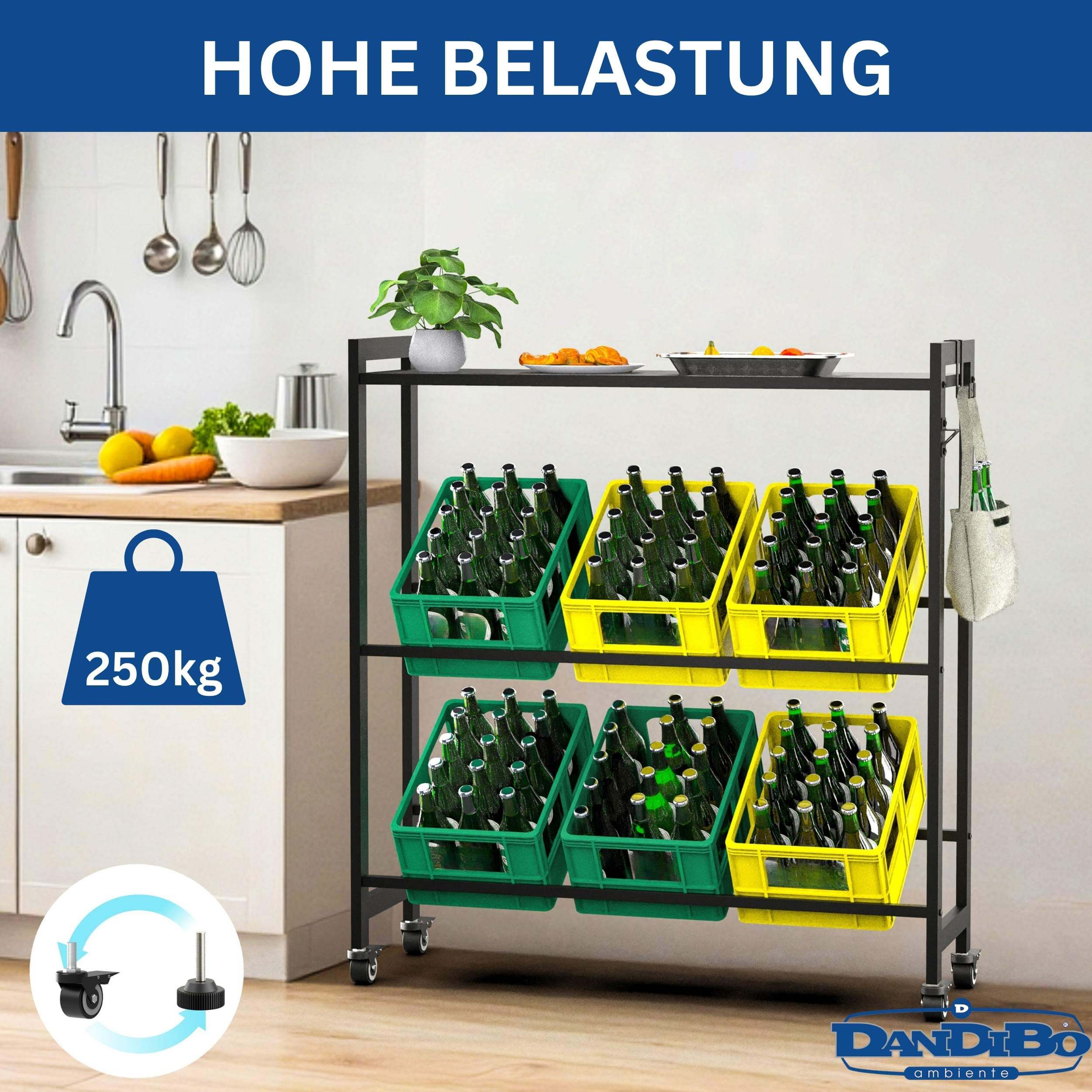 SPACE FOR 6 CRATES & SHELF – The rack holds up to 6 beverage crates and ensures clear, easily accessible storage. The top shelf provides extra space for bottles, supplies or kitchen items.