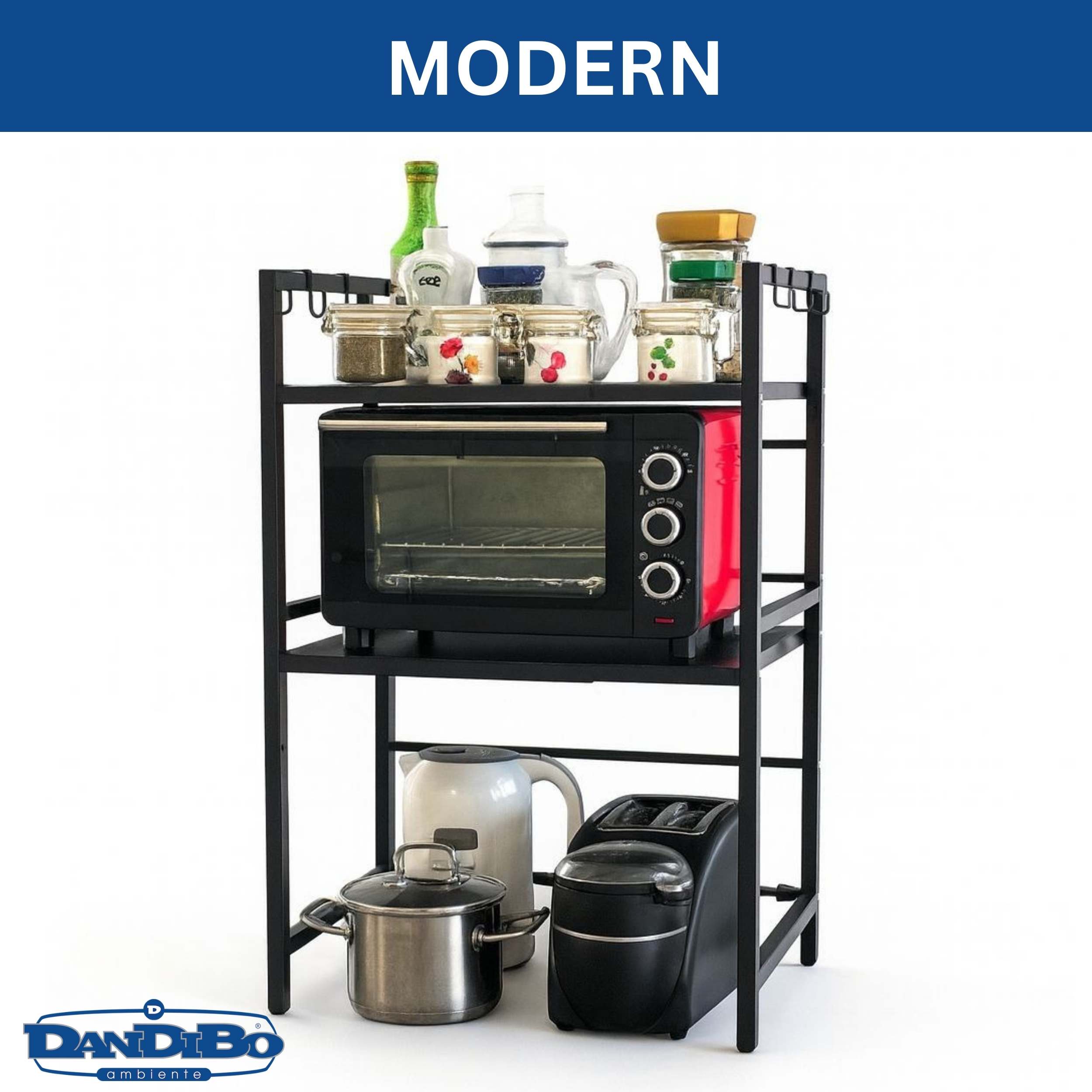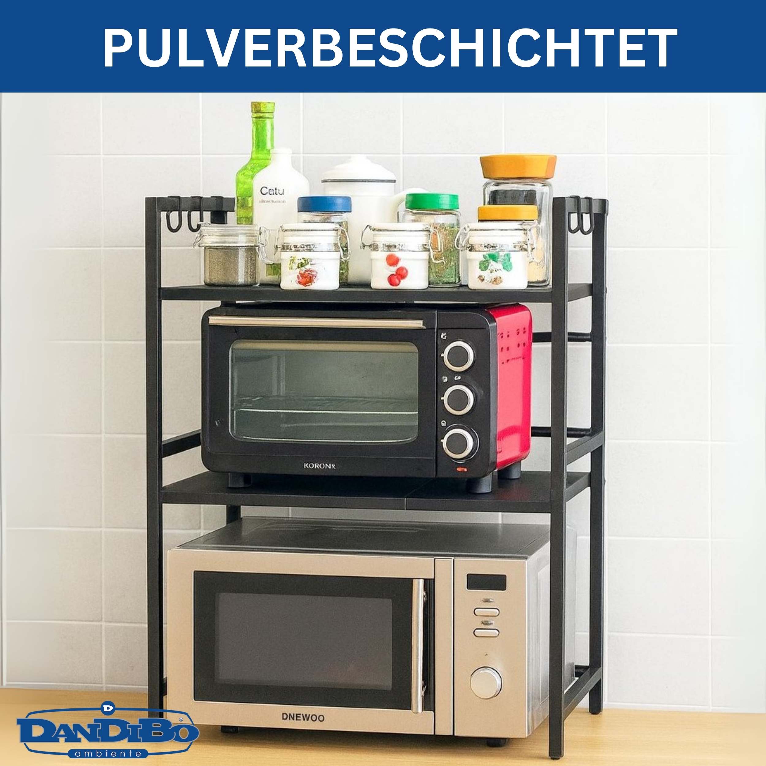 SIZE FLEXIBLY ADJUSTABLE: The kitchen shelf offers maximum flexibility: the width can be adjusted from 40 cm to 64 cm, and the shelf heights are individually adjustable. The 2nd level can be set between 30 cm and 40 cm, and the 3rd level between 25 cm and 35 cm to optimally utilize available space.