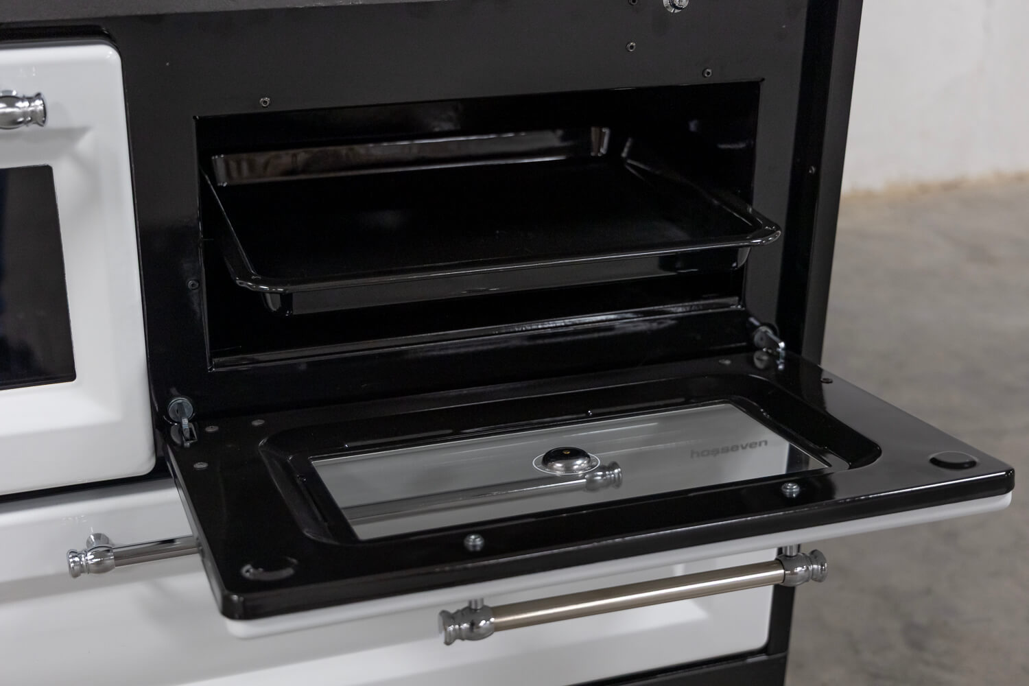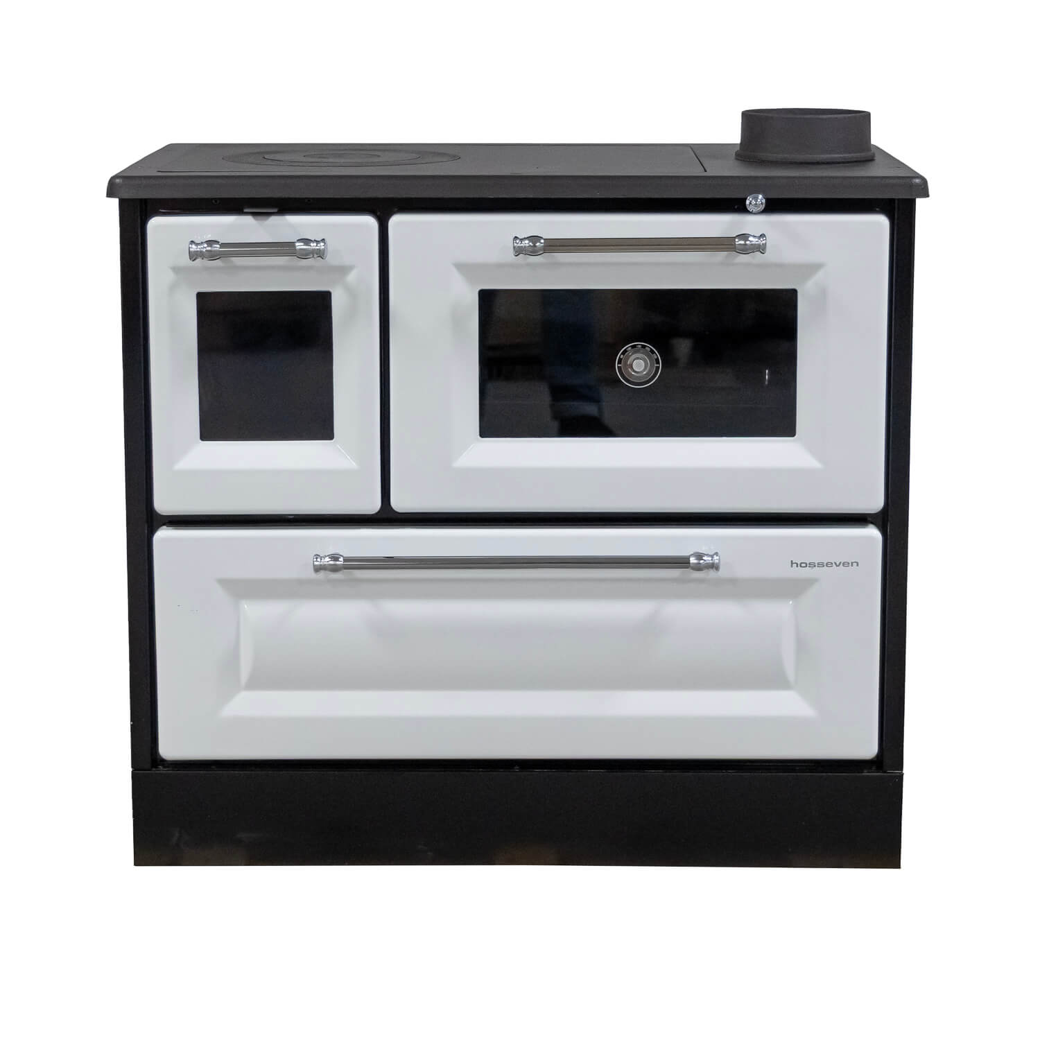Ausgestattet mit einer massiven Gusskochplatte, einem großzügigen Feuerraum und einem integrierten Backofen mit Sichtfenster und Thermometer, ermöglicht der 4012 die Zubereitung von Brot, Pizza, Aufläufen oder Kuchen – mit echter Holzofenwärme und besonderem Geschmack.