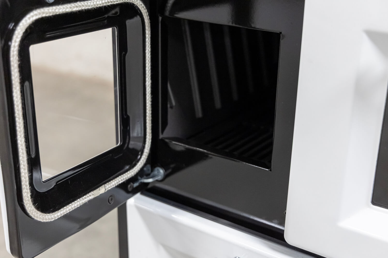 - Ausstattung: Gusskochplatte mit abnehmbarem Ring, Backofen mit Thermometer, Bachblech, Sichtfenster, Ascheschublade