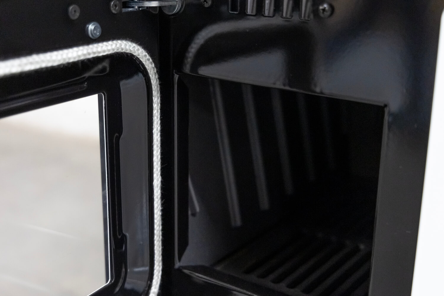 Der Feuerraum ist mit robustem Gusseisen ausgestattet, das gegenüber Schamott zahlreiche Vorteile bietet: Es ist besonders hitzebeständig, formstabil, speichert Wärme langanhaltend und sorgt so für ein gleichmäßiges und effizientes Heizen. Holzscheite mit einer Länge von bis zu 40 cm können quer eingelegt werden – ideal für praktisches und nachhaltiges Heizen mit Holz. Das große Sichtfenster schafft eine behagliche Atmosphäre, während die kompakte Bauweise den Ofen auch für kleinere Küchen oder Räume geeignet macht.